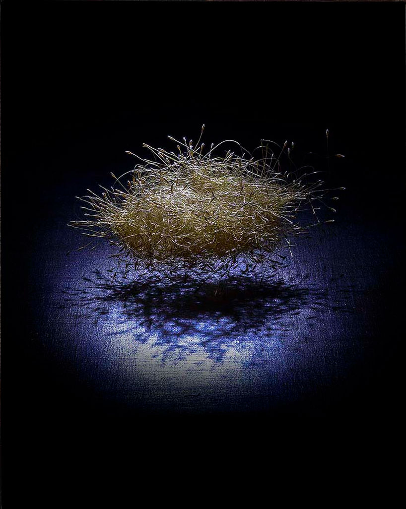 In questo lavoro resta costante e coerente la dilatazione del tempo. Queste opere sono riprese in un ambiente totalmente buio, una volta fatta l’inquadratura procedo ad illuminare il soggetto con una serie di pennellate di luce puntiforme in movimento, disegnando il soggetto per evidenziarne l’architettura ed esaltarne la forza primigenia. Ogni scatto si costruisce in vari minuti, alla fine dei quali la fotografia è conclusa.